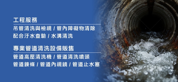本公司為下水道維護專業廠商,包含有污水管線清理及CCTV檢視、雨水箱涵清理疏浚、排水溝清淤檢視、暗溝污泥清除、側溝污泥清洗、各式涵管、管渠清疏檢視、陰井、集水(砂)井及沈澱(砂)池污泥清淤、管內障礙物打(切)除檢視、管接頭試壓、管內止水補漏,管破裂修補、排水管疏通及下水道調查等。本公司施工人員從事於下水道清理皆有多年經驗,對於下水道維護施工經驗豐富、品質優良、效率快速,並致力於維護下水道排水功能良好。